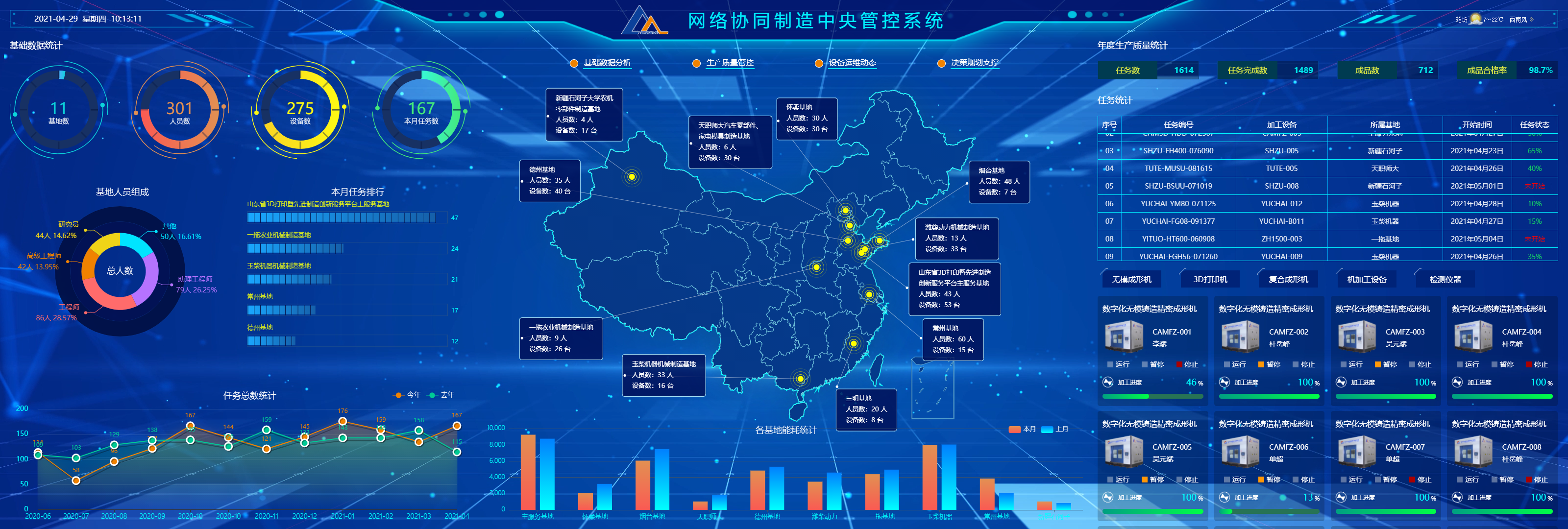 通过对制造过程和制造资源进行建模,生产管控平台接收上层ERP下达的生产指令,根据资源环境和约束条件实现动态调度与协同优化。在生产任务层面,完成生产进度管理、统计分析与异常处理;在设备层面,完成设备运行状态监控、性能分析与报警管理。通过生产看板与安灯呼叫系统为现场管理与操作人员提供指导。