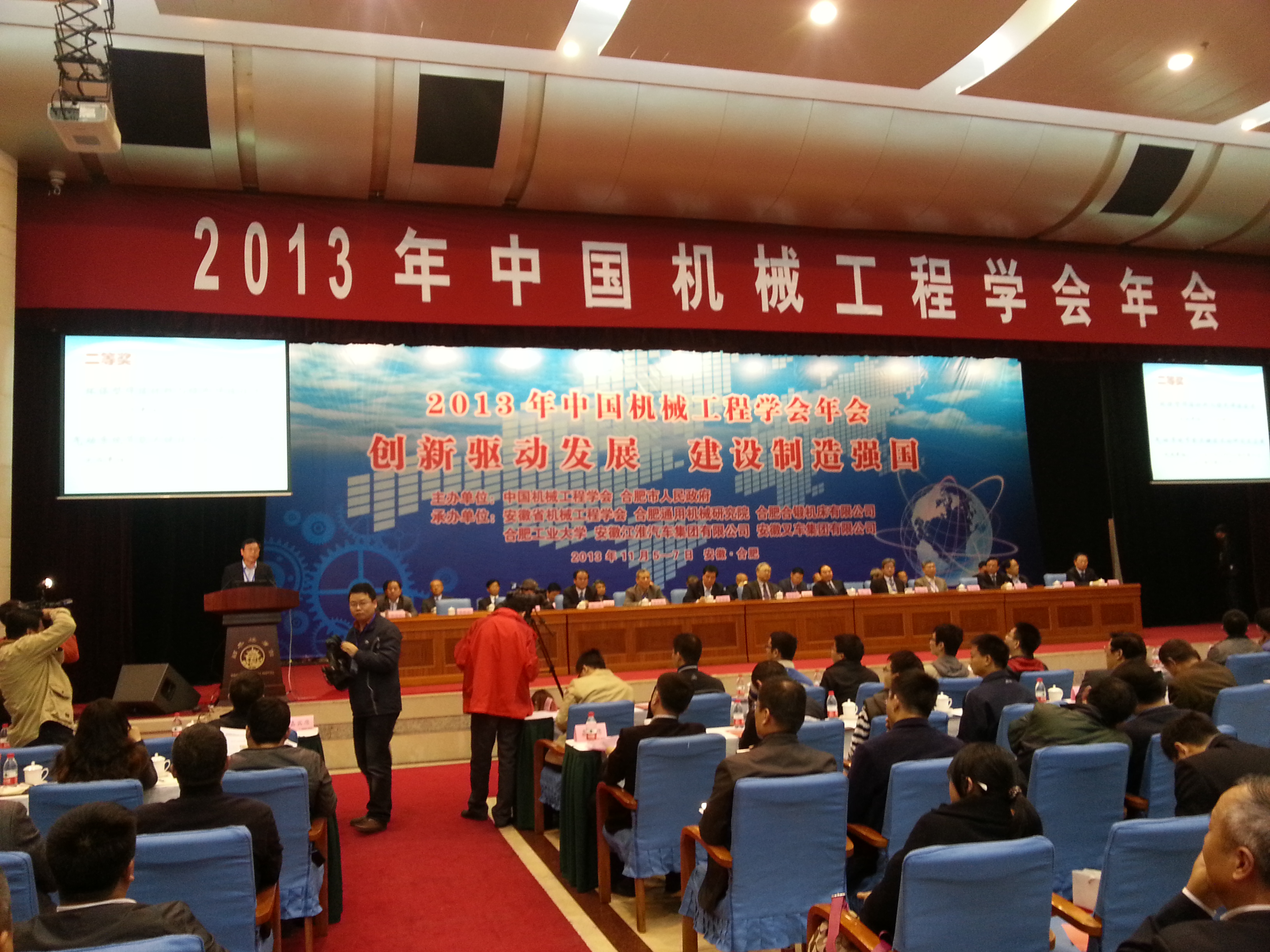 11月5-6日,2013年中国机械工程学会年会在合肥稻香楼宾馆召开。全国人大常委会原副委员长、中国机械工程学会荣誉理事长路甬祥院士,中国工程院院长、中国机械工程学会理事长周济院士等出席会议并作大会报告,我院李新亚院长作为学会副理事长出席会议并在大会上宣读了“第三届绿色制造科学技术进步奖”公告。我院直属单位多名领导和专家参加了此次年会。