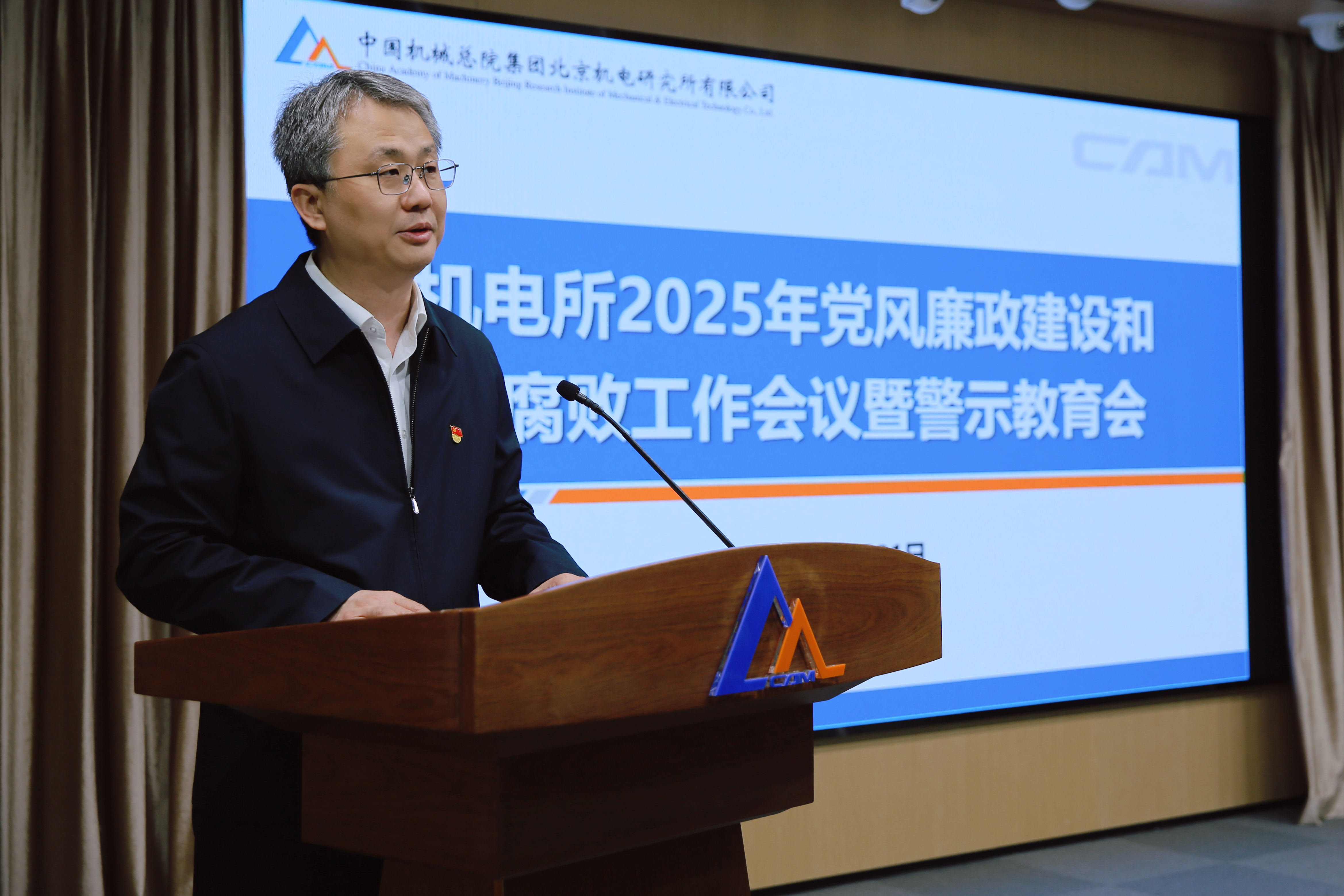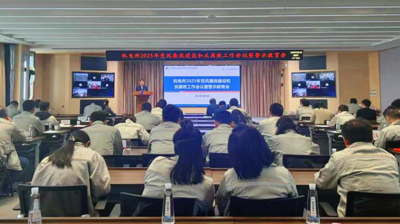 会议以习近平新时代中国特色社会主义思想为指导,全面贯彻党的二十大、二十届三中全会精神、二十届中央纪委四次全会精神,认真落实国务院国资委和集团2025年党风廉政建设和反腐败工作会议暨警示教育会精神,总结机电所2024年工作成效,部署2025年重点任务,结合巡视、巡察、审计、职能监督发现的共性问题进行警示通报,集体观看警示教育片,纵深推进正风肃纪反腐。