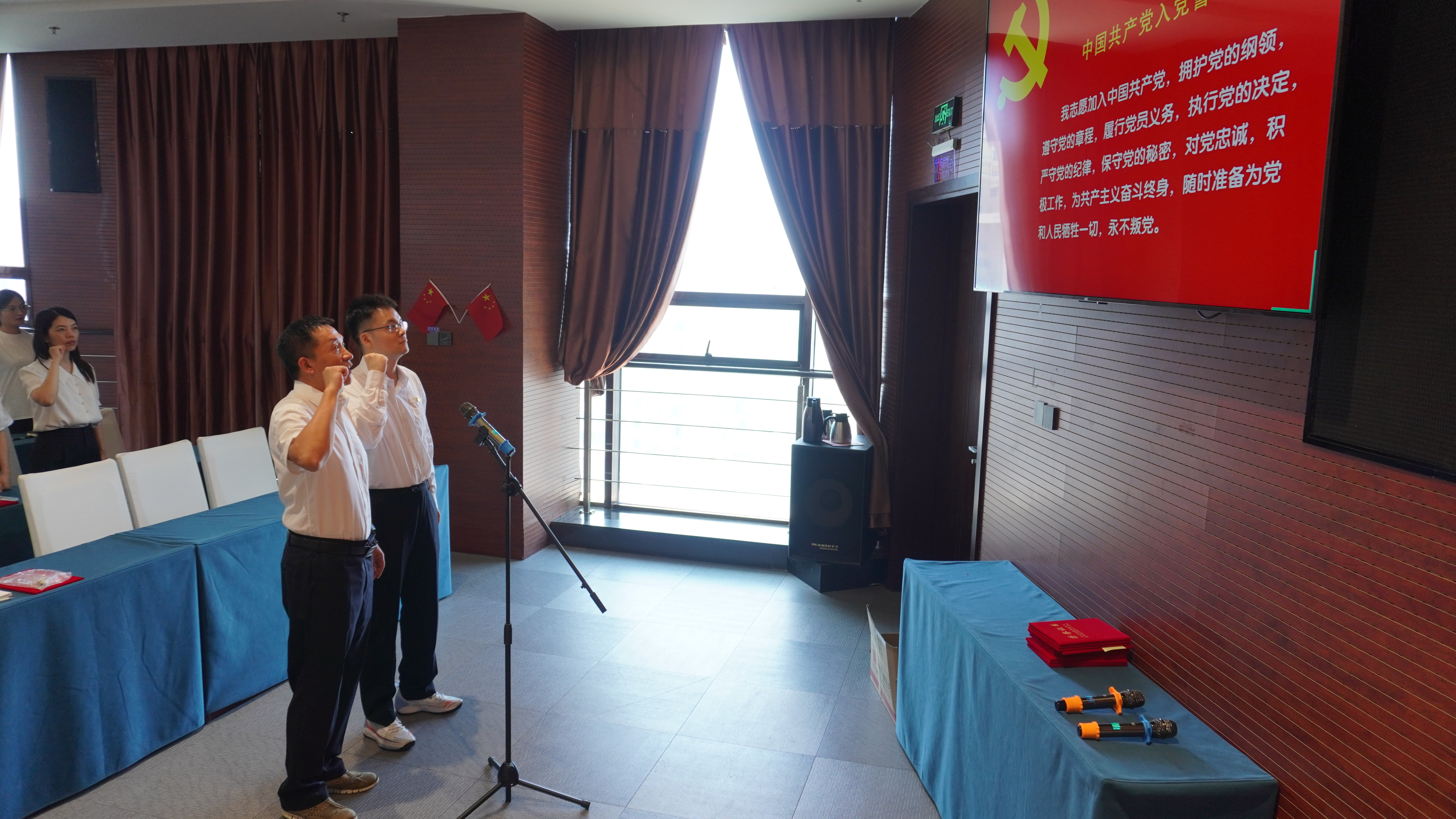 公司党委委员、纪委书记、工会主席董峰带领新党员宣誓、老党员重温入党誓词。