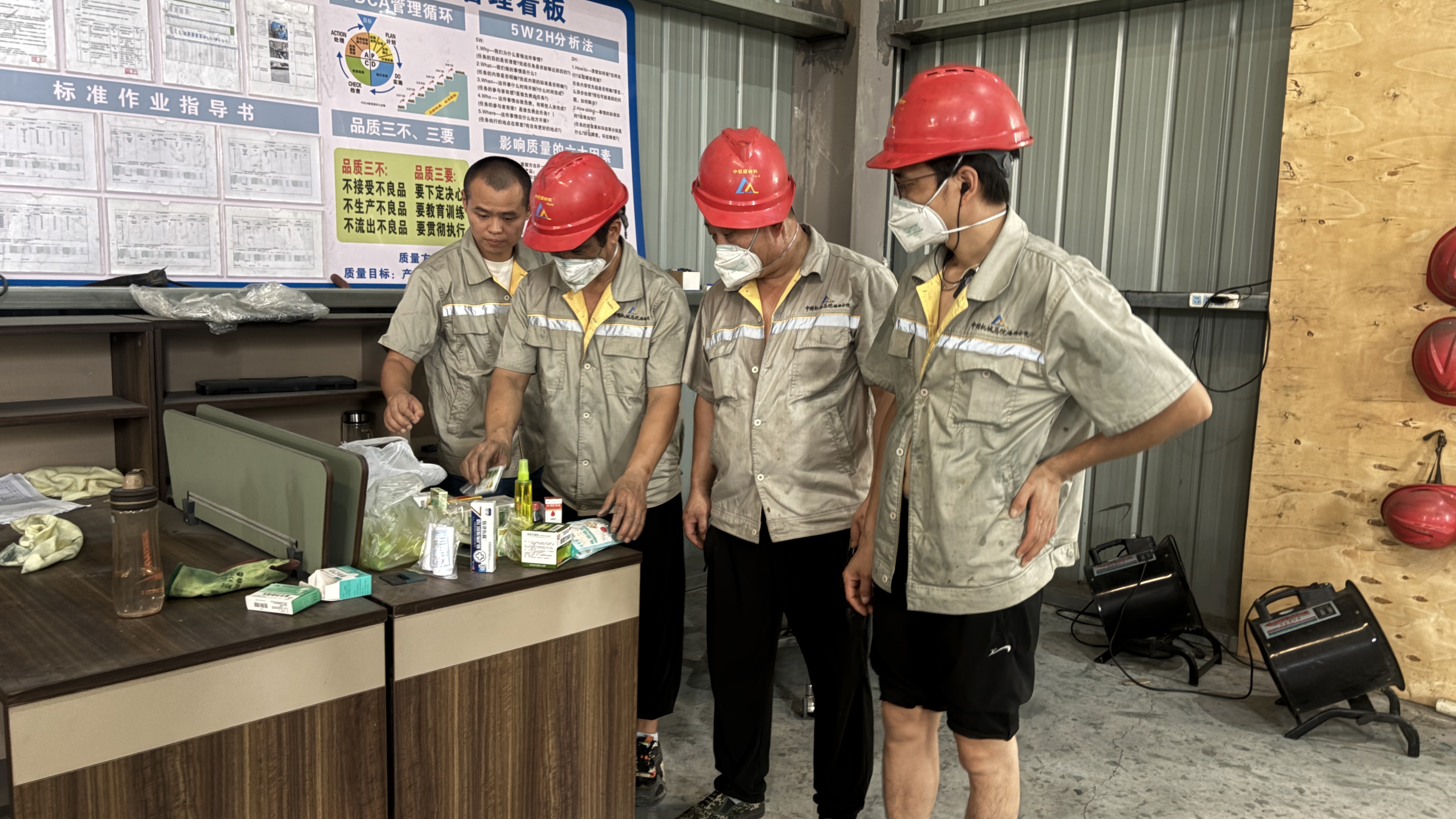 在生产车间品质管理看板前,分院精心筹备的应急药品包逐一送到员工手中,涵盖防暑降温、常见伤病治疗等药品。拿到药品的员工们脸上洋溢着笑容,感受到公司实实在在的关怀。在车间、在办公室,大家相互分享这份喜悦,“公司时刻想着我们,干活更有劲儿了!”一位员工质朴的话语,道出了众人的心声。